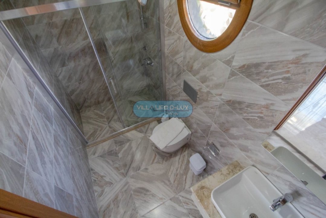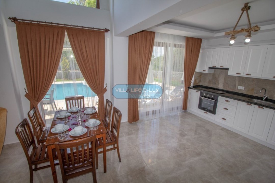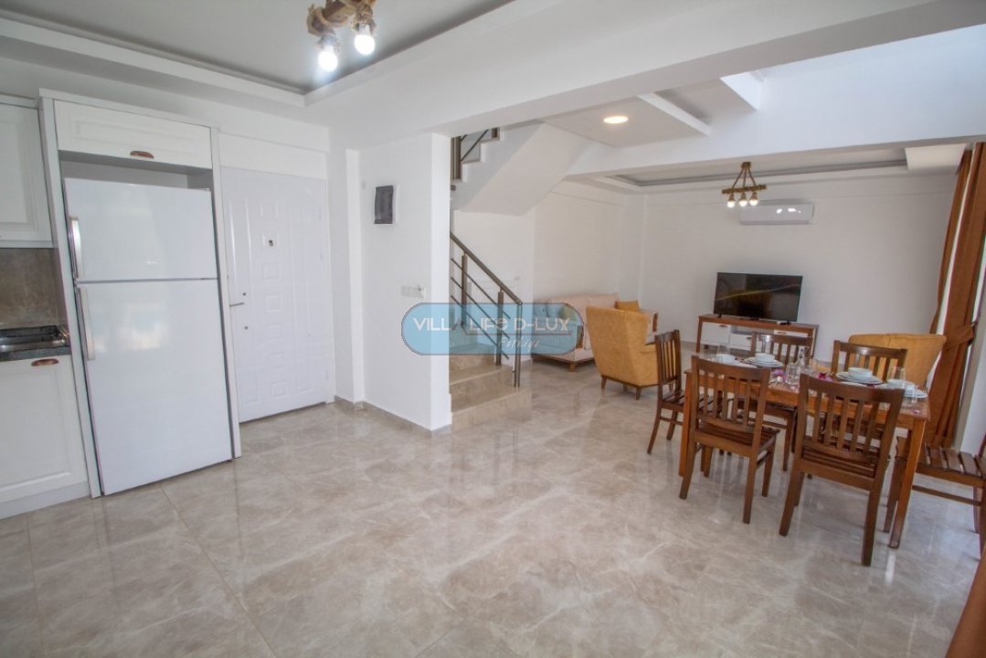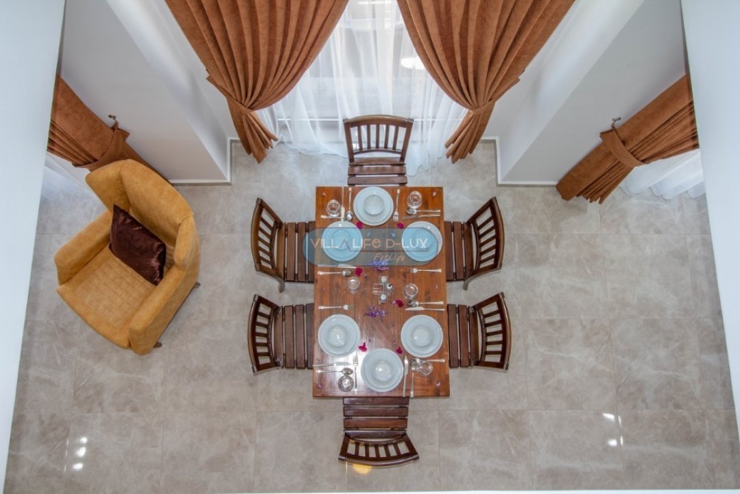 Salon; Modern tasarımlı, özenle dizayn edilmiş salonda şık ve rahat bir oturma grubu, yemek masası ve sandalyeler, televizyon, uydu alıcı, klima bulunmaktadır. Salondan havuz kenarına direkt çıkış bulunmaktadır.