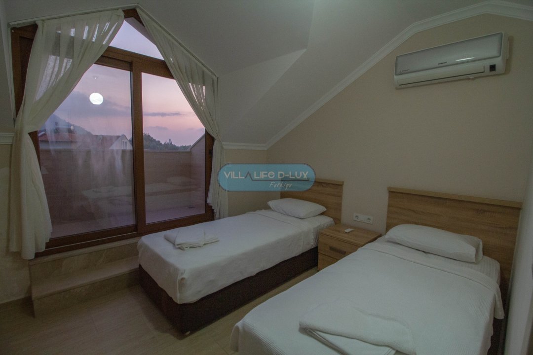 Villamızın içerisinde dört adet yatak odası ve dört adet banyo bulunmaktadır. Yatak odalarının iki tanesinde çift kişilik yataklar, diğer yatak odasında ise iki adet tek kişilik yatak bulunmaktadır. Tüm odaların içerisinde klima ve ebeveyn banyosu bulunmaktadır. Ortak alanda salon, mutfak, klima ve televizyon bulunmaktadır. Villamızın havuzu dışarıdan görünmemektedir. Bu özelliği ile muhafazakar aileler için uygun bir seçenektir.