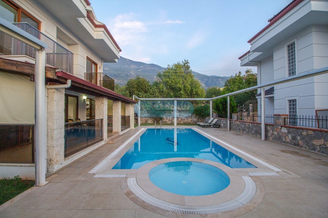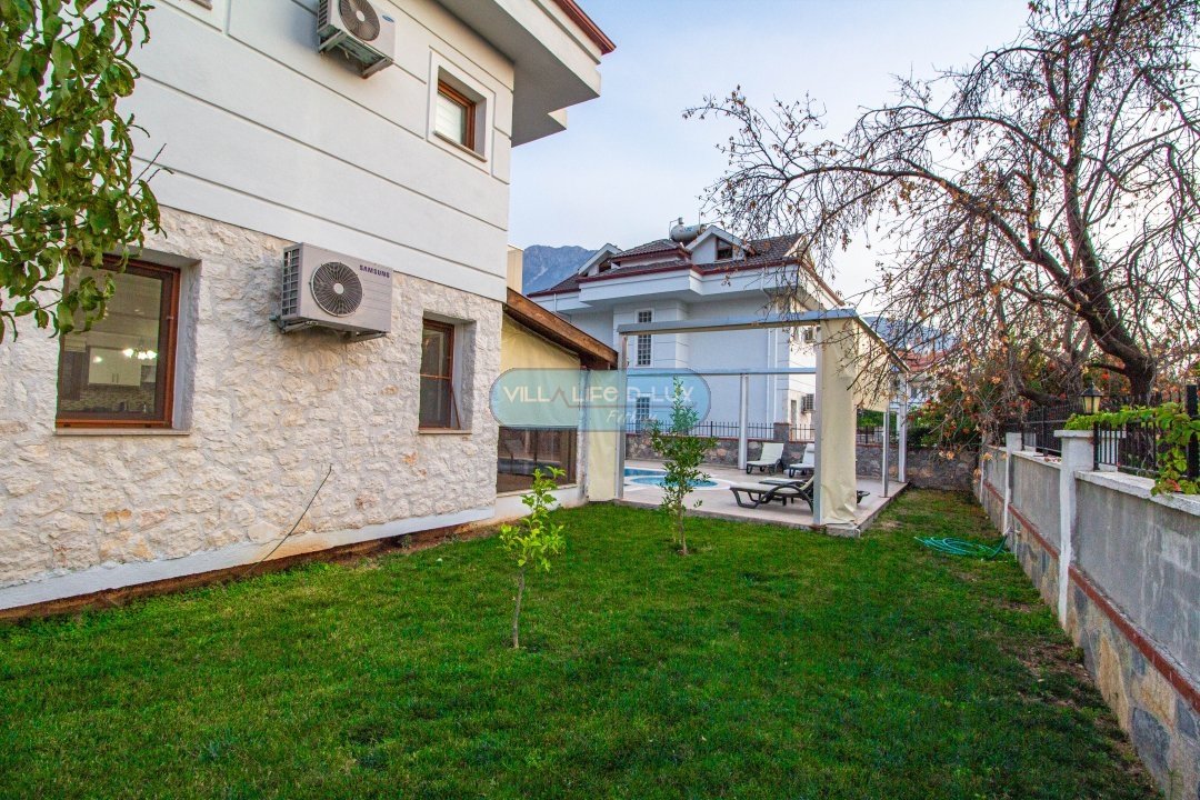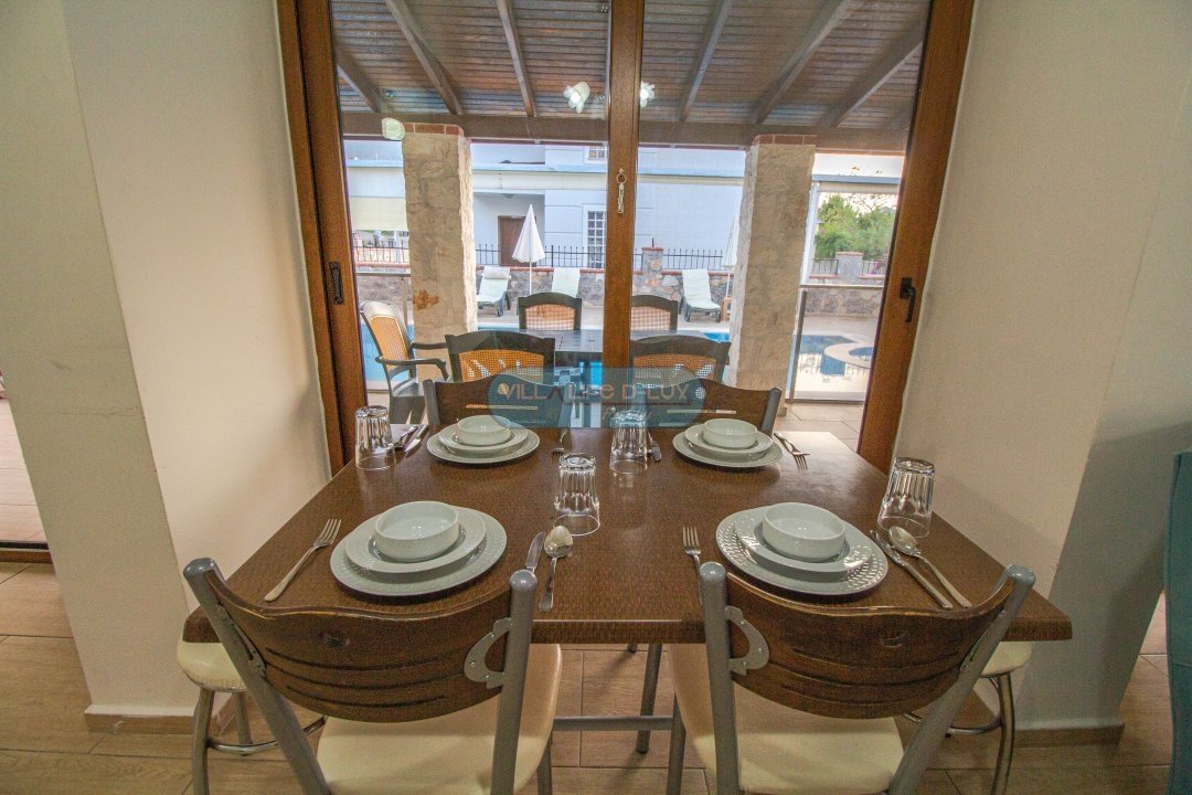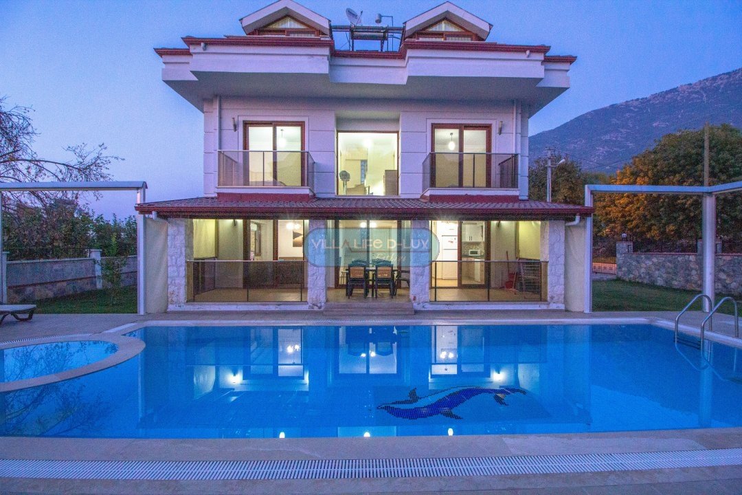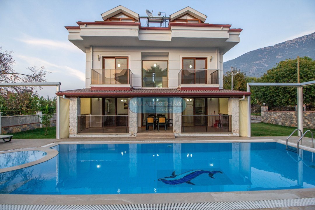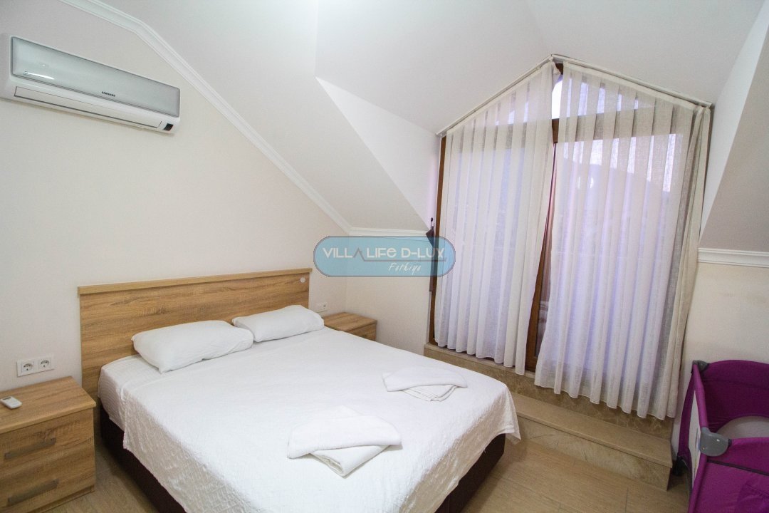 Villamızın içerisinde dört adet yatak odası ve dört adet banyo bulunmaktadır. Yatak odalarının iki tanesinde çift kişilik yataklar, diğer yatak odasında ise iki adet tek kişilik yatak bulunmaktadır. Tüm odaların içerisinde klima ve ebeveyn banyosu bulunmaktadır. Ortak alanda salon, mutfak, klima ve televizyon bulunmaktadır. Villamızın havuzu dışarıdan görünmemektedir. Bu özelliği ile muhafazakar aileler için uygun bir seçenektir.