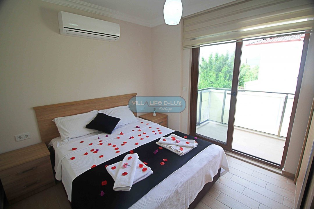 Villamızın içerisinde dört adet yatak odası ve dört adet banyo bulunmaktadır. Yatak odalarının iki tanesinde çift kişilik yataklar, diğer yatak odasında ise iki adet tek kişilik yatak bulunmaktadır. Tüm odaların içerisinde klima ve ebeveyn banyosu bulunmaktadır. Ortak alanda salon, mutfak, klima ve televizyon bulunmaktadır. Villamızın havuzu dışarıdan görünmemektedir. Bu özelliği ile muhafazakar aileler için uygun bir seçenektir.