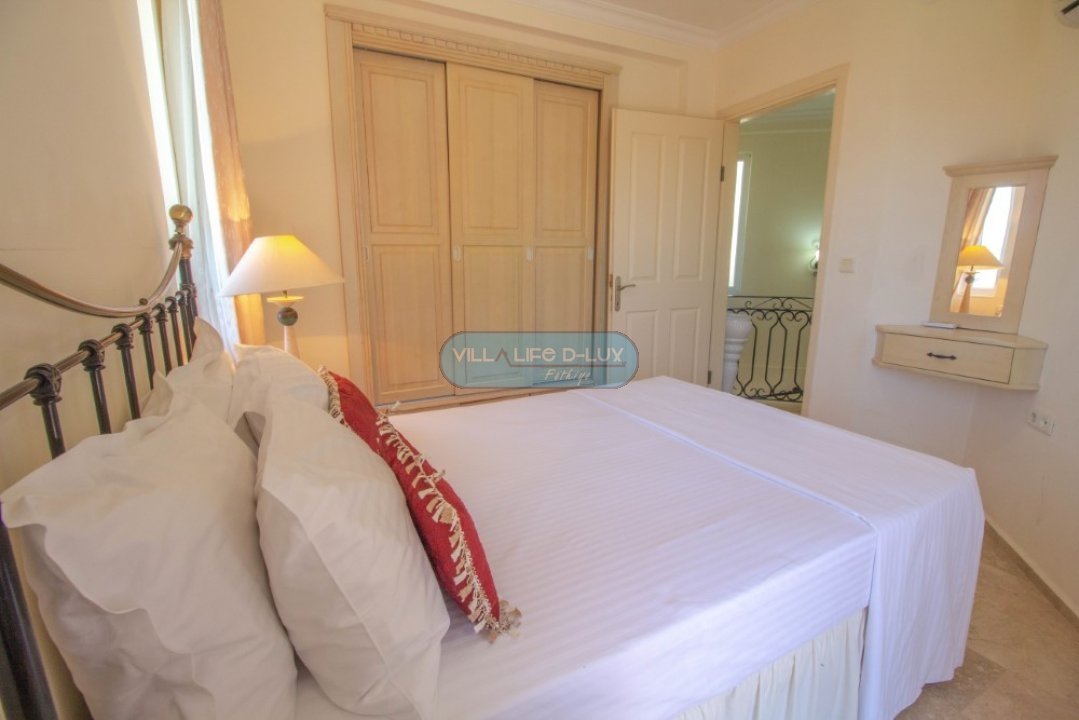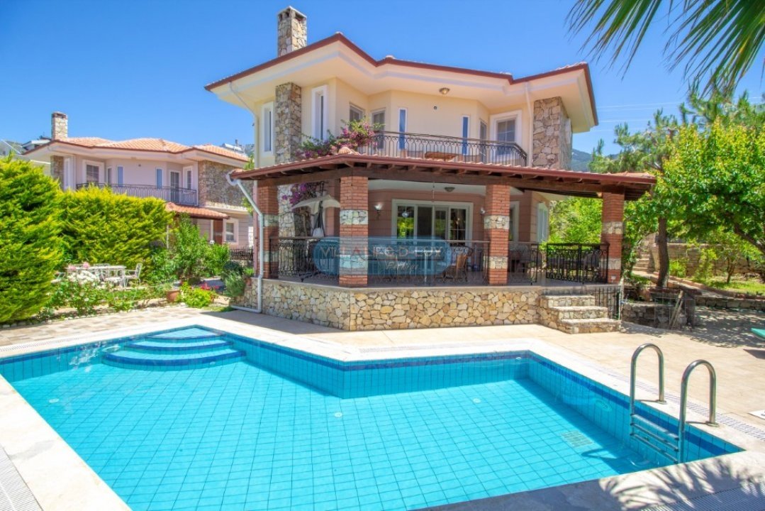 Villa Kelebek, cennet gibi doğası,tarih dokusuyla ünlü tatil beldemiz Fethiyenin Ovacık mevkisindedir. Villamızın içinizi açan çiçekli, özel bahçesinde ve özel havuzunda keyif yapabilir, dilerseniz aracınızla 2006 yılında Dünyanın en güzel plajı seçilen Ölüdenize, dünya mutfakları ve çarşısı ile meşhur Hisarönüne aracınızla kısa sürede ulaşıp tatilinizi renklendirebilirsiniz. Villamız 3 odalı, 2 banyolu, 6 kişi kapasitelidir. Villamızın kendisine özel havuzunda yemyeşil doğa manzarasıyla harika zamanlar sizi bekliyor. Salon; Modern tasarımlı, özenle dizayn edilmiş salonda şık ve rahat bir oturma grubu, yemek masası ve sandalyeler, televizyon, uydu alıcı, klima bulunmaktadır. Salondan havuz kenarına direkt çıkış bulunmaktadır. Mutfak; Modern Amerikan mutfakta buzdolabı, çamaşır makinesi, bulaşık makinesi, fırın, ankastre 4′ lü ocak, elektrikli su ısıtıcısı, yemek takımı, çaydanlık, çatal bıçak seti, tavalar, tencereler, bardaklar bulunmaktadır. Havuz; Tamamen villada konaklayacak olanlara ait özel yüzme havuzu bulunmaktadır. Bahçe; Havuz başında güneşlenme terası, şezlong ve şemsiyeler, mangal bulunmaktadır. Yatak Odaları: 1.Yatak Odası: 1 Çift kişilik yatak, elbise dolabı, komodin, ebeveyn banyosu, ve balkon bulunmaktadır. 2. Yatak Odası: 1 Çift kişilik yatak, elbise dolabı, komodin, banyo (ortak) ve balkon bulunmaktadır. 3. Yatak Odası: 2 Tek kişilik yatak, elbise dolabı, komodin, banyo (ortak) ve balkon bulunmaktadır. Villamız 6 kişi kapasitelidir. Su, elektrik kullanımı, giriş temizliği, havuz ve bahçe bakımı fiyata dahildir. Fiyatlar konaklama tarihine göre değişiklik gösterebilir. Lütfen güncel fiyatlar için bizimle iletişime geçiniz. Hasar Depozitosu: Villaya girişte hasar, zayi, kırık, dökük vb. için nakit olarak 1000 TL hasar depozitosu alınacaktır. Herhangi bir sıkıntı olmadığı takdirde villa çıkışında hasar depozitosu nakit olarak iade edilecektir. Not: Evcil hayvanları çok seviyoruz ama maalesef hijyen ve alerjik durumdan dolayı kabul edemiyoruz.