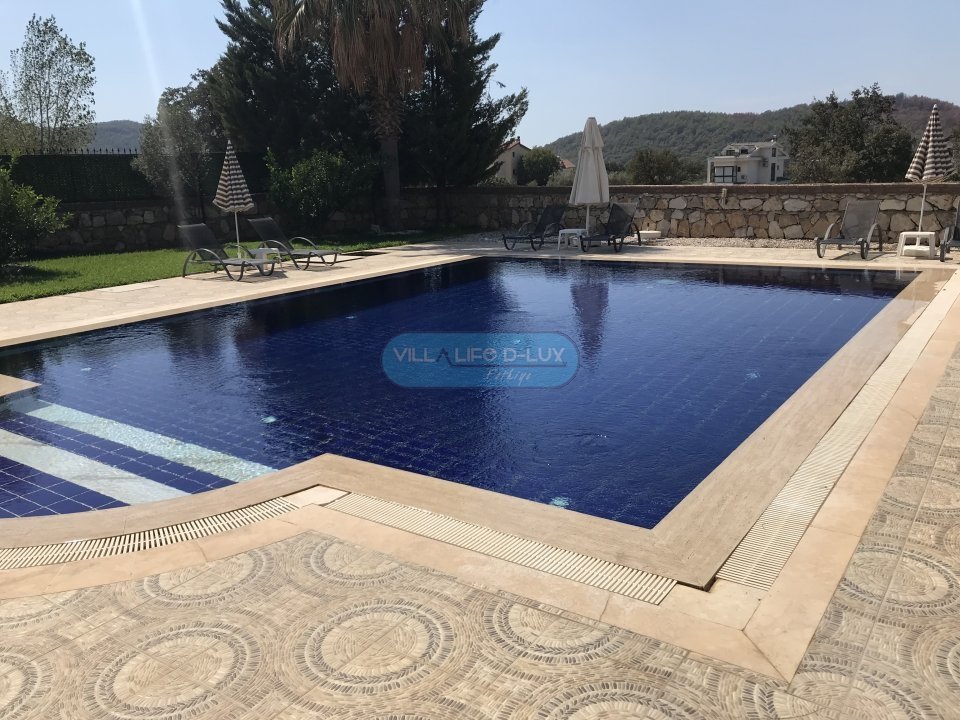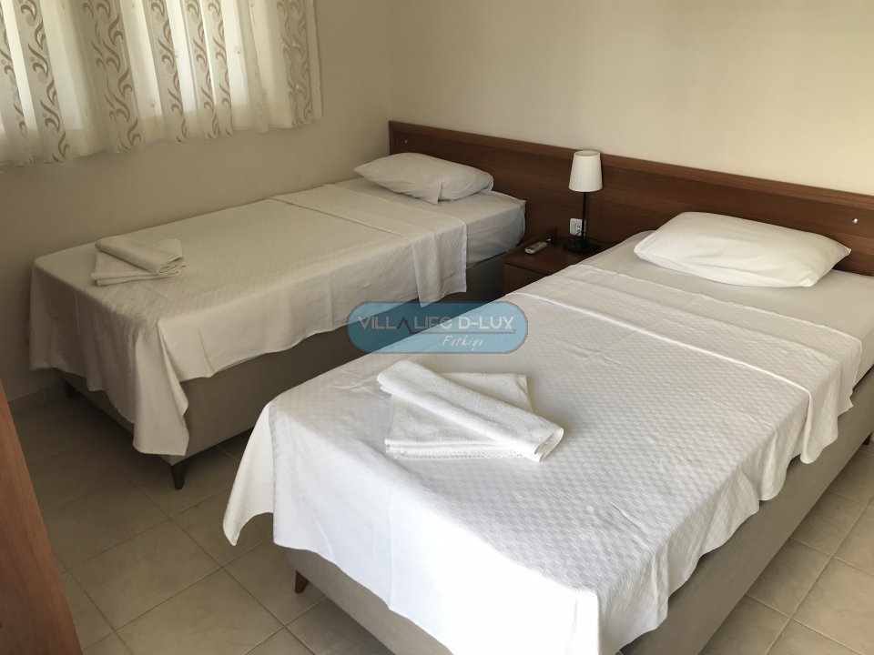 Villa Malibu , Fethiye, Ölüdeniz, Ovacık mevkiinde bulunmaktadır. Sessiz, sakin bir konumda bulunan villamız Hisarönü merkeze 2 dakika, Ölüdeniz’e 5 dakika sürüş mesafesindedir. Şehrin gürültüsünden uzak, konforlu bir tatil deneyimi yaşamak isteyen misafirlerimiz için ideal bir yazlık villadır. Villamızın bahçesinde oldukça büyük ebatlarda özel yüzme havuzu bulunmaktadır. Dubleks olarak inşa edilmiş olan villamız toplamda 3 yatak odası ve 2 banyodan oluşmaktadır. Yatak odalarının tamamı 1. katta yer almakta olup giriş katında açık plan mutfak ve salon bulunmaktadır. Bahçe : Özel bahçesinde özel yüzme havuzu, güneşlenme alanı, 4 kişilik bahçe yemek masası ve sandalyeler, güneş şemsiyeleri, şezlonglar ve mangal bulunmaktadır. Havuz : Tamamen villaya ait Özel yüzme havuzu bulunmaktadır. Havuz ölçüleri: uzunluk 9 m; genişlik 7 m; derinlik 1,6 m’dir. Giriş Katı: Oturma grubu, LCD TV, uydu alıcısı, yemek masası ve sandalyeler bulunmaktadır. Mutfak : Modern dekore edilmiş geniş mutfak bulunmaktadır. Mutfak içerisinde 4’lü ocak, fırın, buzdolabı, elektrikli su ısıtıcısı, mikrodalga fırın, çamaşır makinesi, tost makinesi, bulaşık makinesi, çatal bıçak takımı, 6 kişilik yemek takımı, tencere ve tavalar, su ve çay bardakları yer almaktadır. Yatak Odaları: 1. Yatak Odası: 1 adet çift kişilik yatak, komodin, elbise dolabı, balkon ve banyo bulunmaktadır. 2. Yatak Odası: 1 adet çift kişilik yatak, komodin, elbise dolabı ve banyo bulunmaktadır. 3. Yatak Odası: 2 adet tek kişilik yatak, elbise dolabı, balkon, komodin ve banyo bulunmaktadır. Villamız max. 6 kişi kapasitelidir. Su, elektrik kullanımı, giriş temizliği, havuz ve bahçe bakımı fiyata dahildir. Fiyatlar konaklama tarihine göre değişiklik gösterebilir. Lütfen güncel fiyatlar için bizimle iletişime geçiniz. Hasar Depozitosu: Villaya girişte hasar, zayi, kırık, dökük vb. için nakit olarak 1000 TL hasar depozitosu alınacaktır. Herhangi bir sıkıntı olmadığı takdirde villa çıkışında hasar depozitosu nakit olarak iade edilecektir. Not: Evcil hayvanları çok seviyoruz ama maalesef hijyen ve alerjik durumdan dolayı kabul edemiyoruz.