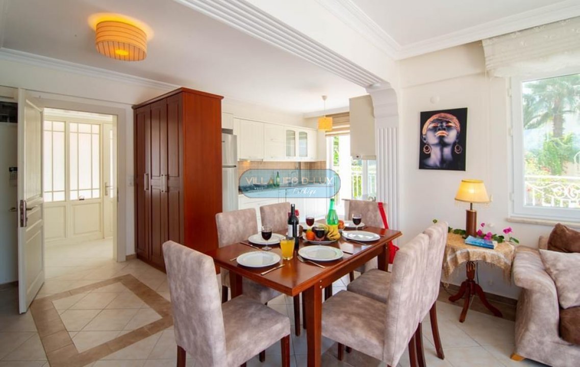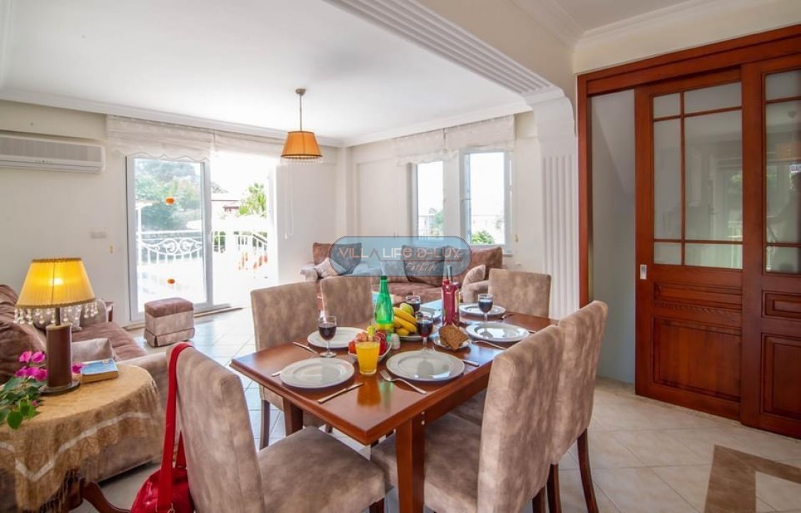 Salon; Modern tasarımlı, özenle dizayn edilmiş salonda şık ve rahat bir oturma grubu, yemek masası ve sandalyeler, televizyon, uydu alıcı, klima bulunmaktadır.Salondan havuz kenarına direkt çıkış bulunmaktadır.