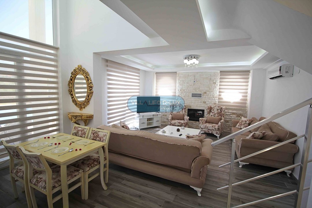 Salon: Oturma grubu, yemek masası ve sandalyeler, LCD TV, klima bulunmaktadır. Salondan havuz başına kolaylıkla geçilebilmektedir. Kendinizi özel hissedeceğiniz her türlü konfor düşünülmüştür